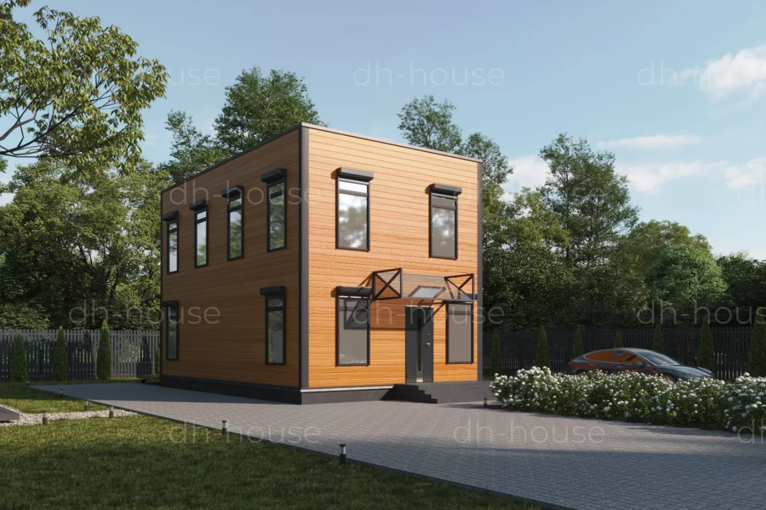 Модель "LIGHT 148" представляет двухэтажный дом современного дизайна общей площадью 148 квадратных метров. Этот вариант отлично подходит для семьи с детьми, ищущей уютное и функциональное жилище.