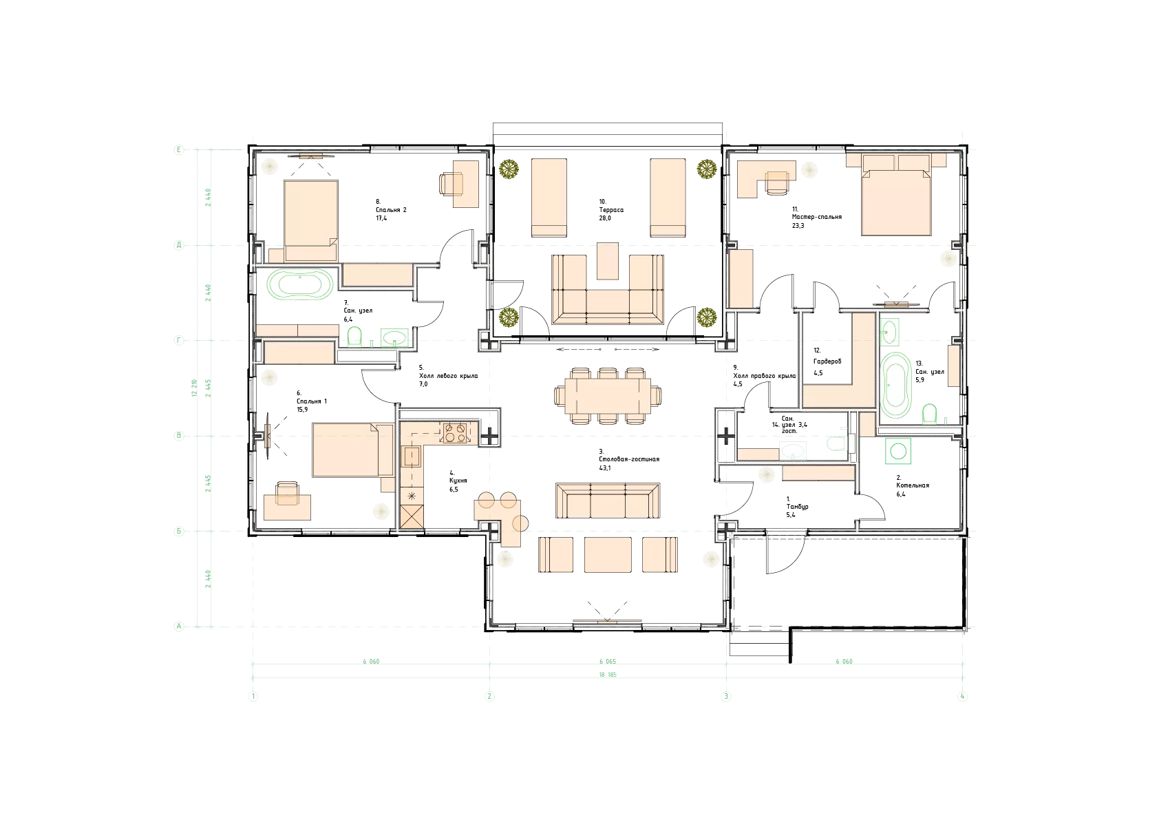 3 спальни