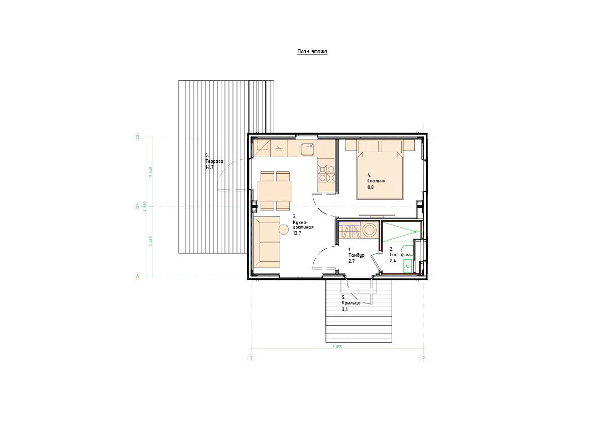 Модель "ULTRA 29" представляет одноэтажный дом современного дизайна общей площадью 29 квадратных метров. Этот компактный и экономичный вариант отлично подходит для маленькой семьи или пары, ищущей уютное и функциональное жилище.