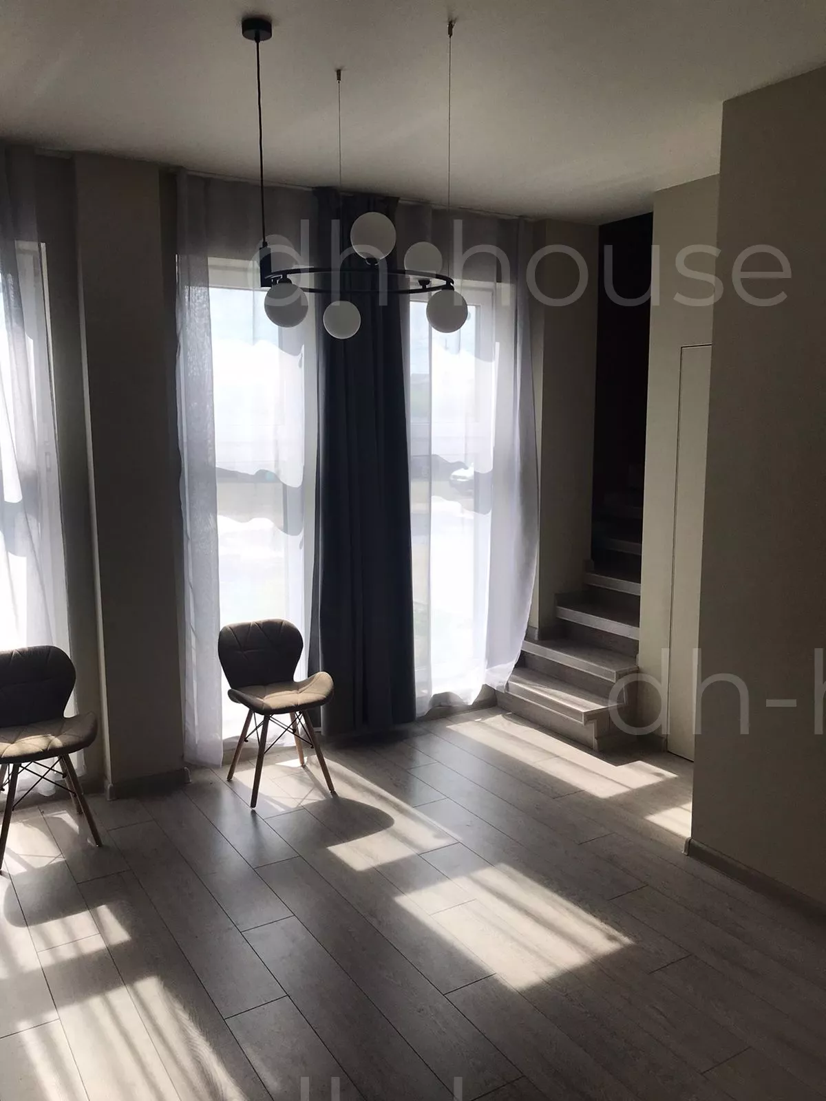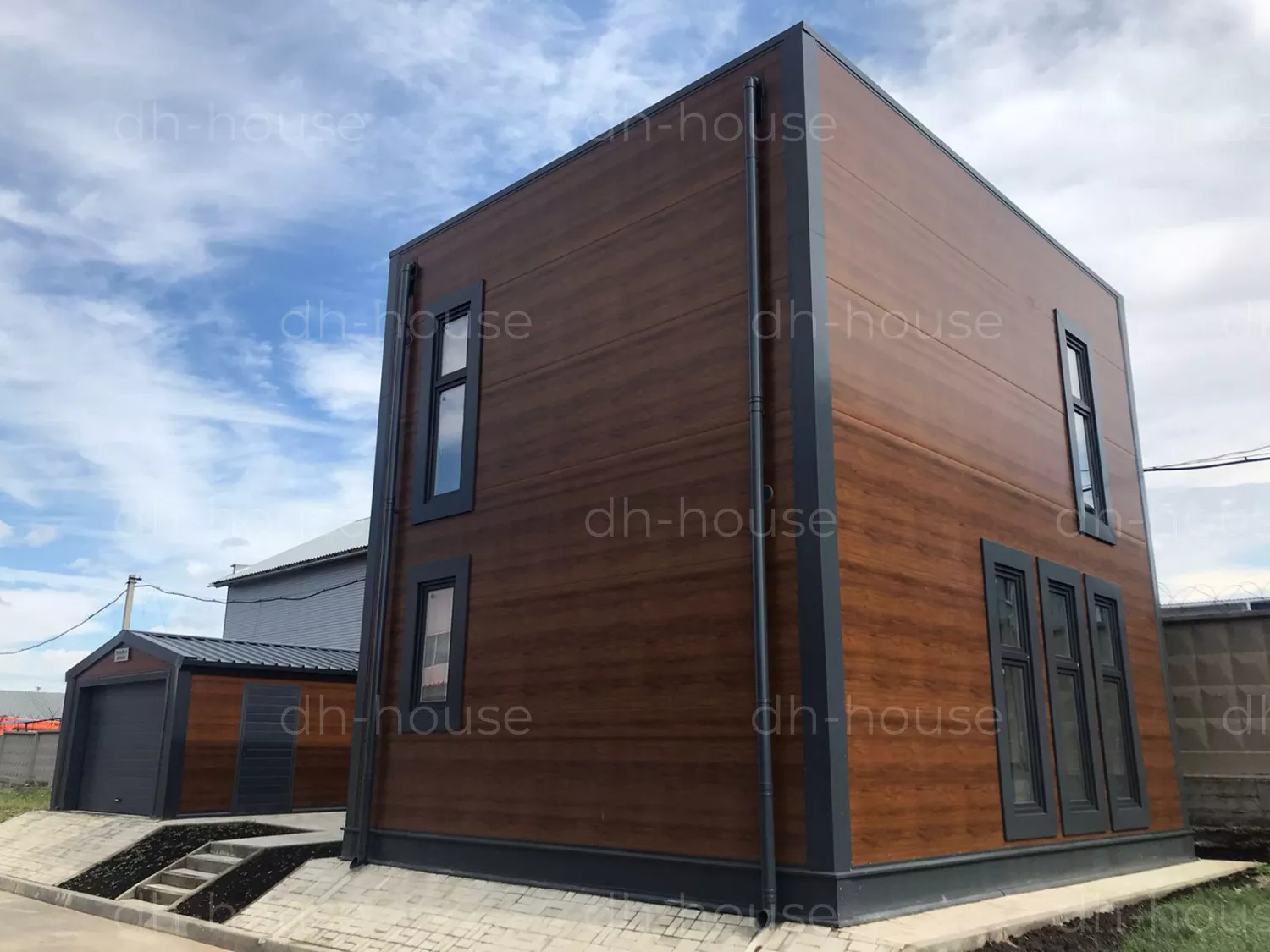 На первом этаже размещена гостиная, совмещенная с кухней, спальня, санузел, а на втором — две комнаты для отдыха, санузел и гардеробная. По желанию заказчика в планировку могут быть внесены изменения. Использование передовых технологий при строительстве двухэтажного модульного дома гарантирует комфортное круглогодичное проживание семьи из 3–4 человек.
