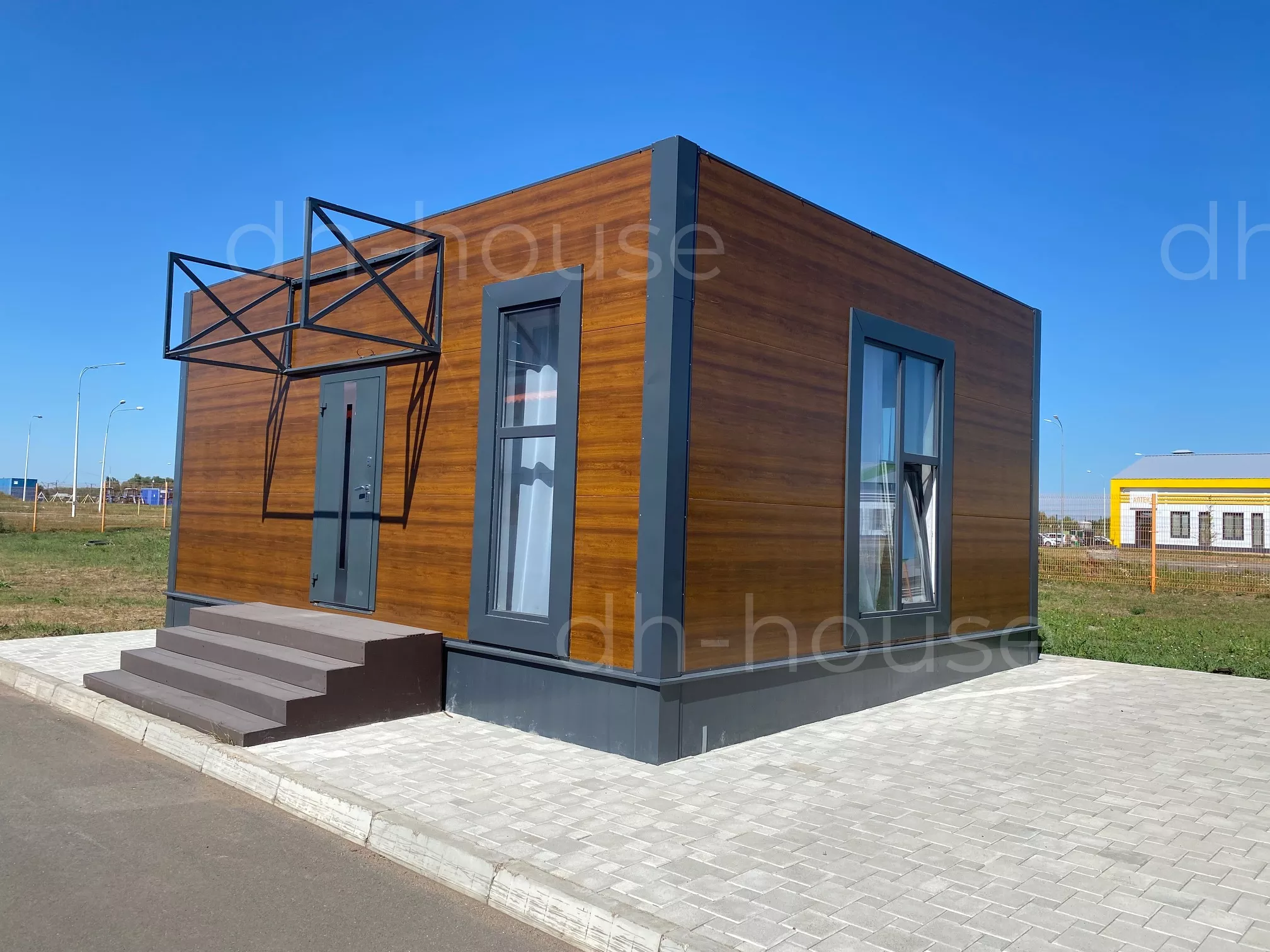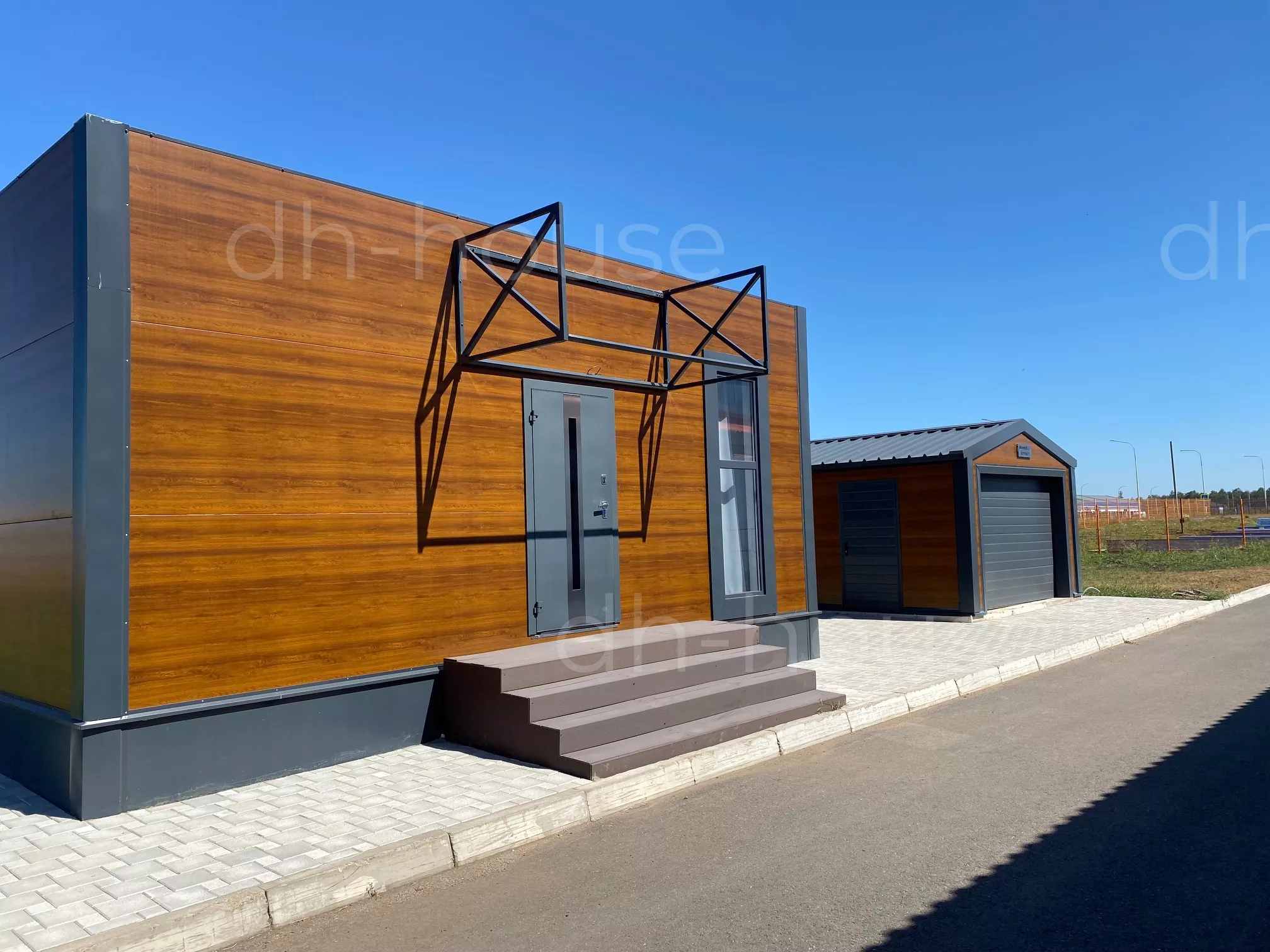 Как и все небольшие модульные одноэтажные дома, EFFECT LIGHT 44 имеет простую форму фасада, что в сочетании с плоской кровлей придает зданию стильный и современный вид. Высокие окна позволяют визуально расширить внутреннее пространство и наполнить его светом. Проект быстровозводимого дома предусматривает максимальный комфорт семье из 2-3 человек. Типовая планировка может быть изменена по согласованию с заказчиком. Строительство модульного дома специалистами компании Doorhan может быть завершено за 1 месяц месте с фундаментом и всеми подготовительными работами.